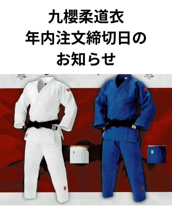 九櫻柔道衣 年内注文受付締切日のお知らせ